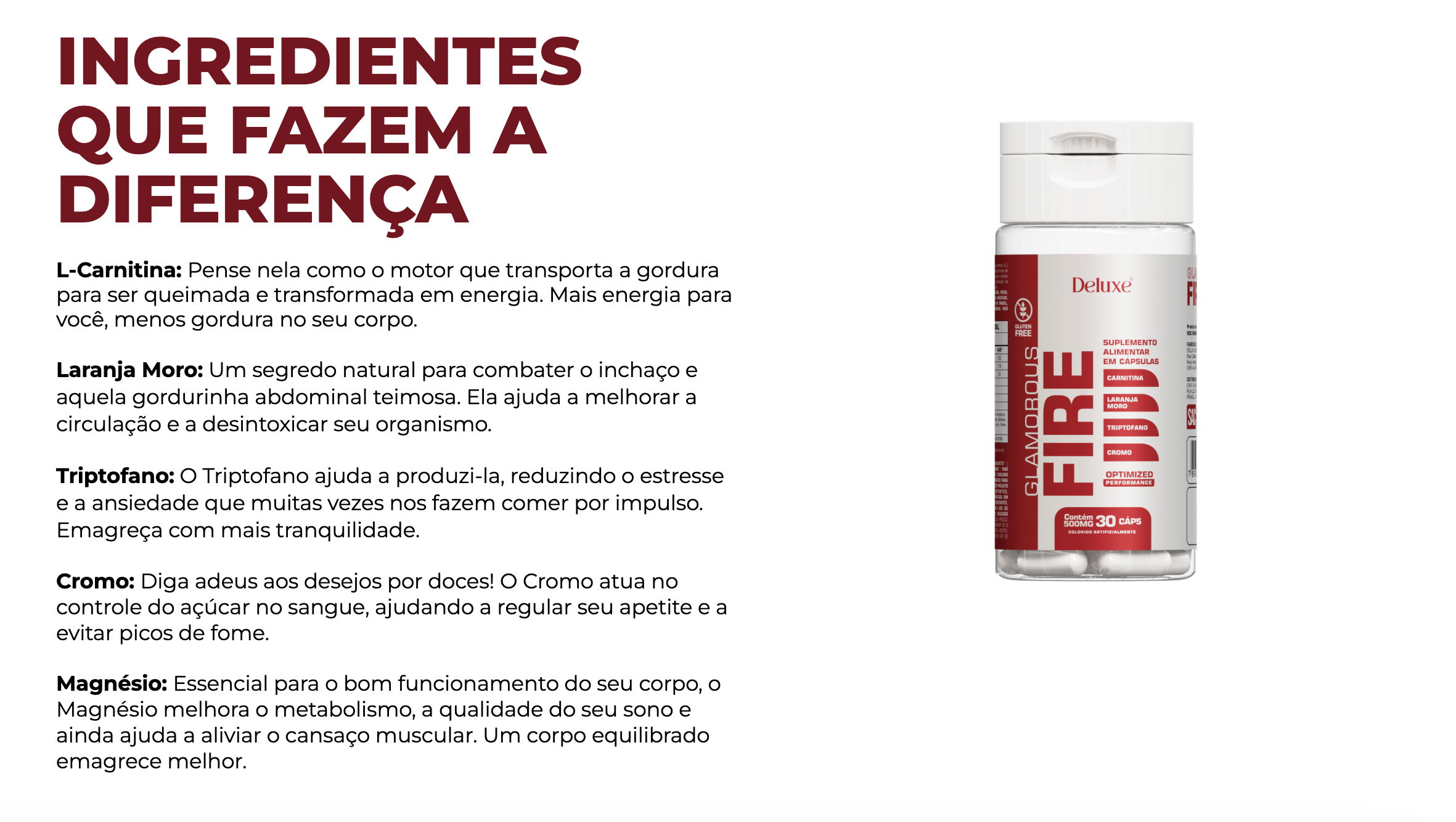 O Glamorous Fire é perfeito para quem deseja um suporte eficaz no processo de emagrecimento, aliado a uma rotina equilibrada e saudável. Lembre-se que o suplemento funciona melhor quando acompanhado de uma alimentação balanceada e exercícios físicos regulares.
